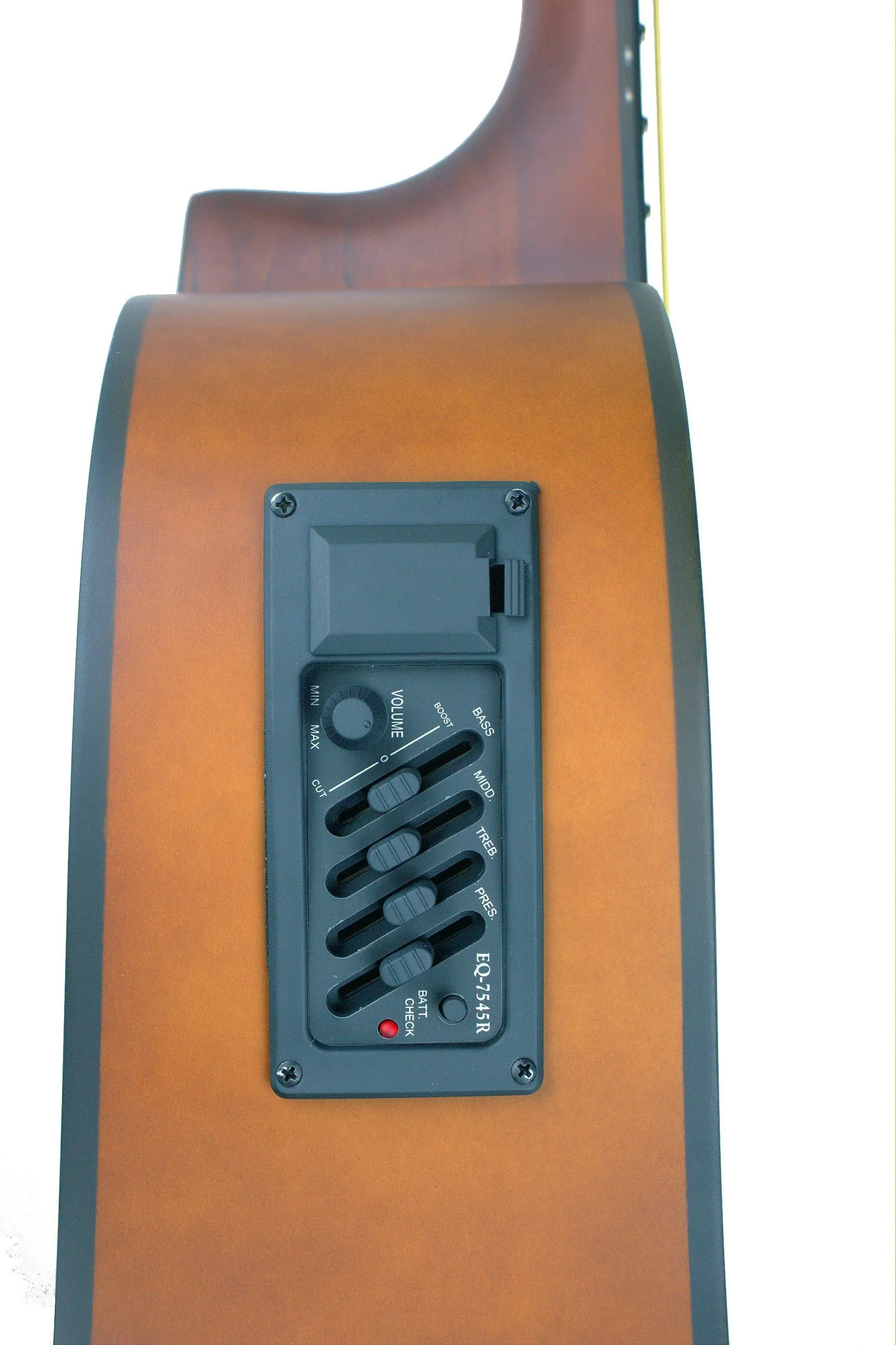 - Эквалайзер: Четырёхполосный эквалайзер EQ-7545R с регулятором громкости и фейдером PRES., что позволяет настраивать частоту звучания инструмента в зависимости от окружения и стиля игры.