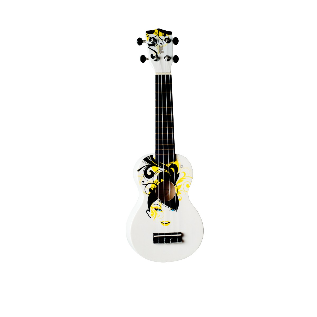 WIKI UK/FLORAL - гитара укулеле сопрано, липа, рисунок 'девушка с цветами', чехол в комплекте