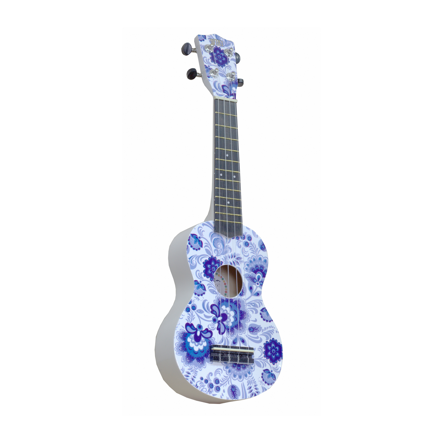 WIKI UK/RUS/GZHEL - гитара укулеле, сопрано, липа, рисунок 'ГЖЕЛЬ', чехол в комплекте.