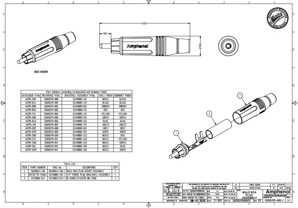 AMPHENOL ACPR-SRD - разъем кабельный, RCA, цвет серый, с красным кольцом, покрытие контактов золото