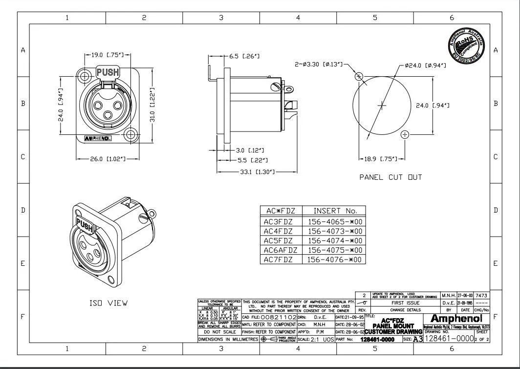 AMPHENOL AC3FDZ - разъем XLR панельный мама , 3 контакта, квадратный фланец, цвет никель