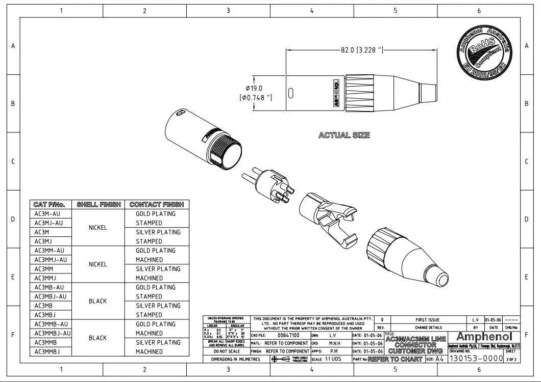 AMPHENOL AC3MM - разъем XLR кабельный папа , 3 контакта, точеные контакты, цвет - никель