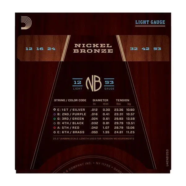 D`addario nb1253 струны для акустической гитары никелированная бронза, light 12-53