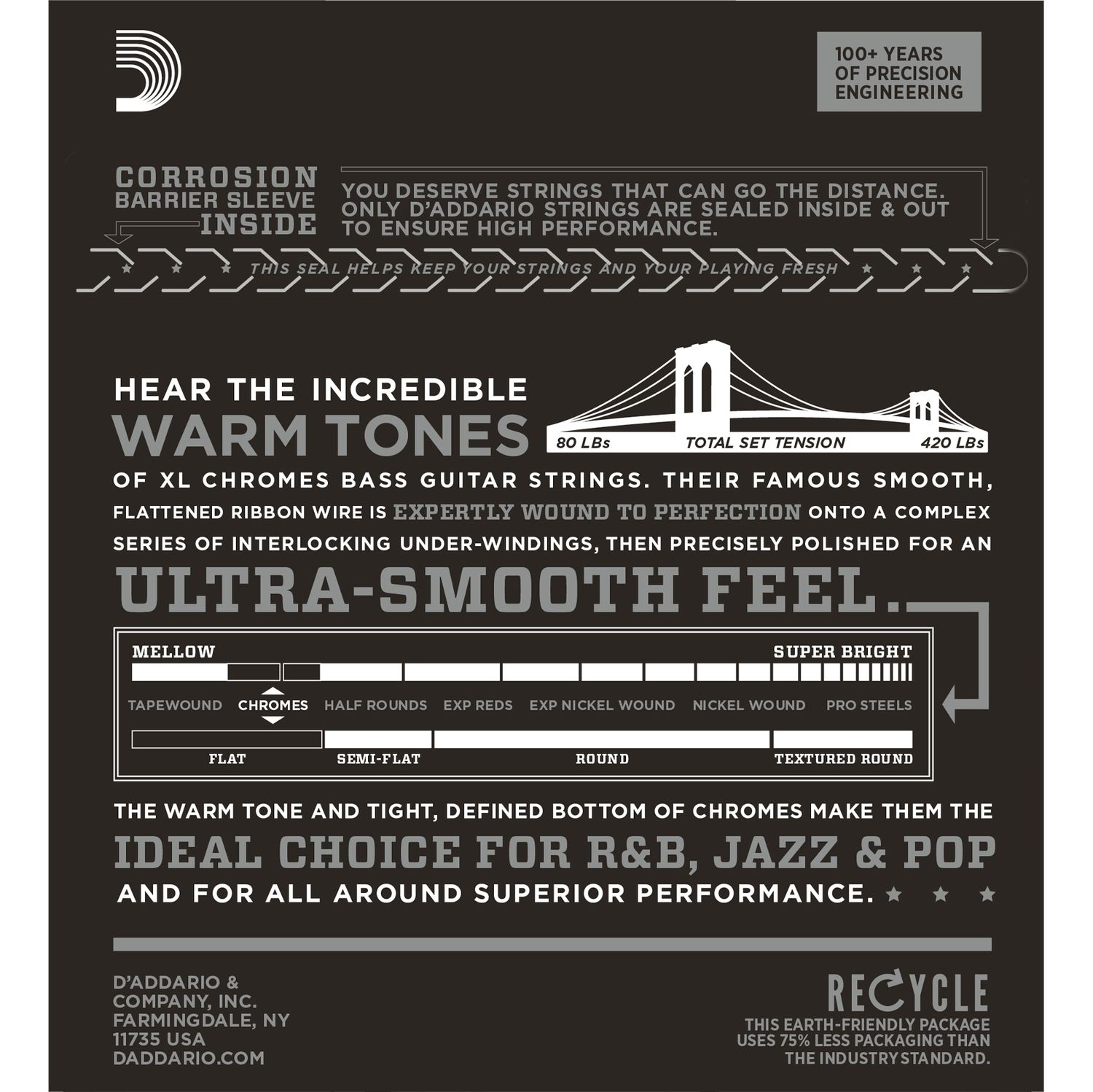 D'ADDARIO ECB81-5SL - струны для БАС-гитары, 5 струн, Soft, хром, плоск.оплётка, 45-132