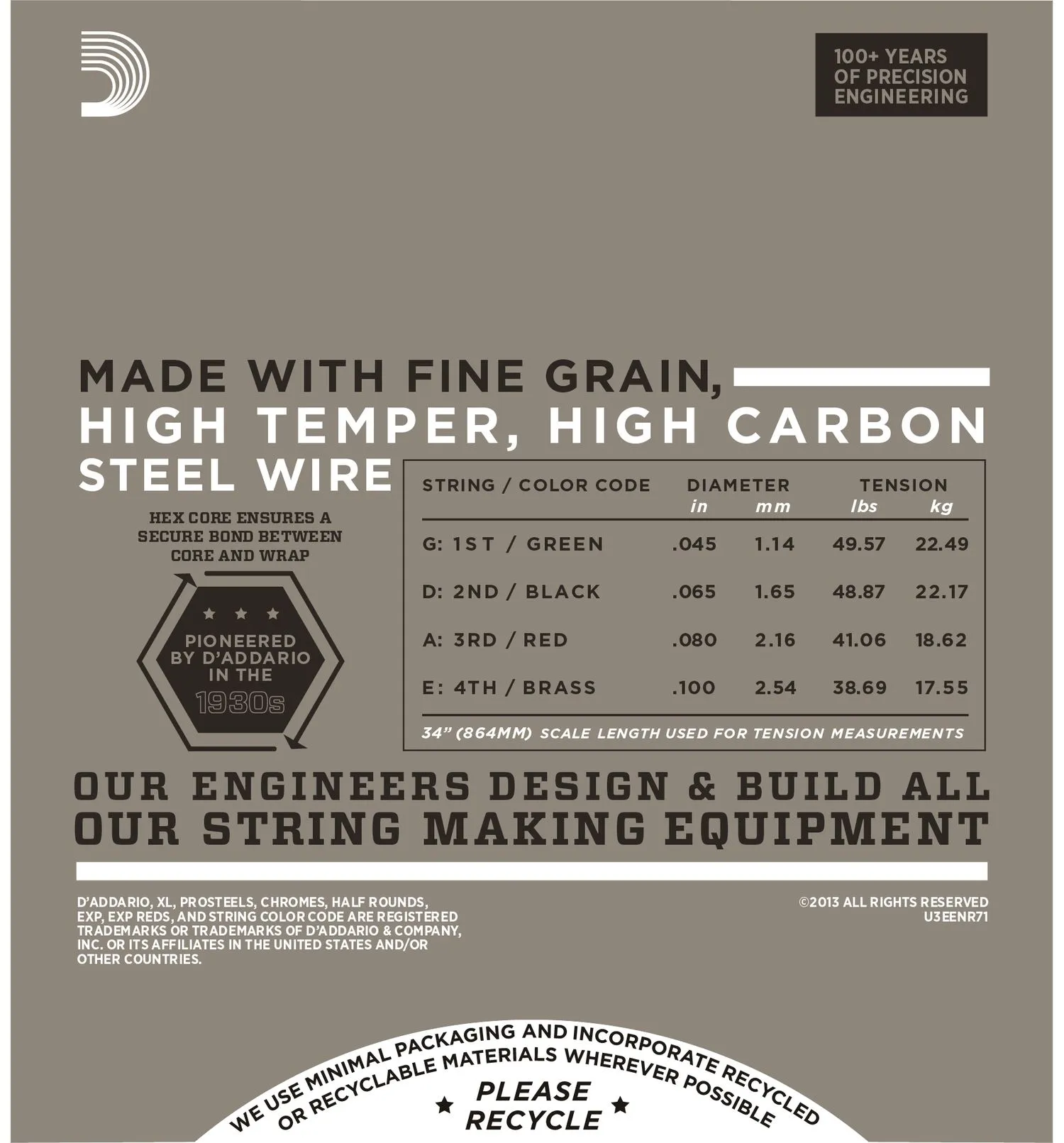 D'ADDARIO ENR71 - струны для БАС-гитары, Nickel/Long, 45-100
