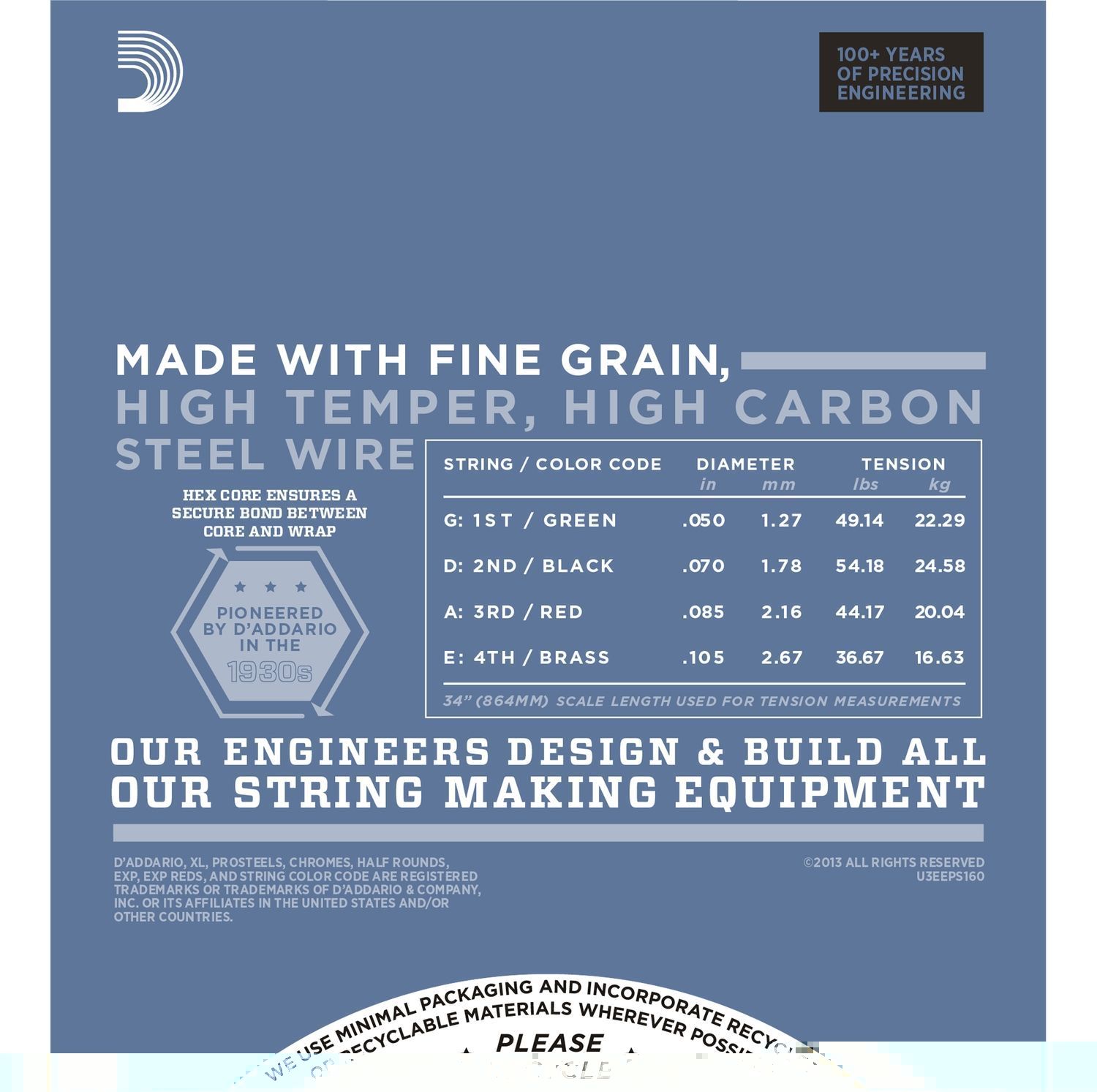 D'addario EPS160 - струны для 4 струнной бас-гитары ( 50 - 105 ) сталь