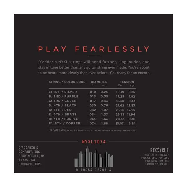 D'ADDARIO NYXL1074 - струны для 8-стр. электрогитары,10-74