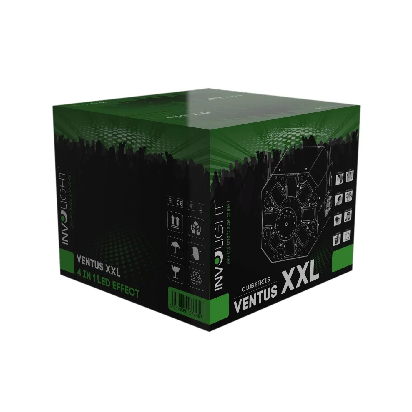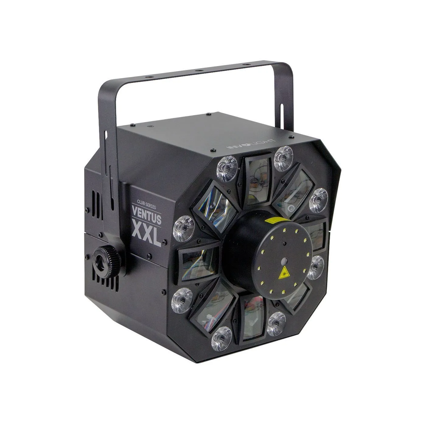 DMX функции: wash-эффект; flower-эффект; cтробоскоп, лазер; смена цвета; звуковая активация; авто-программы, вращение.