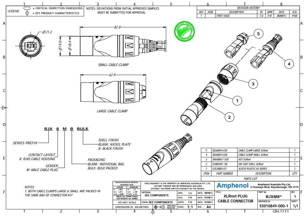 AMPHENOL RJX8MB - корпус для кабельного разъема RJ45, серия XLRnet, цвет черный