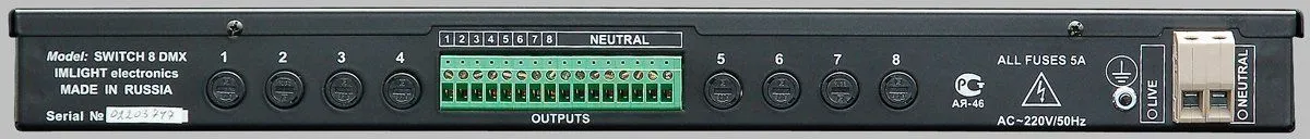 ИМЛАЙТ Switch 8 DMX блок прямых включений, 1 фаза, 8 по 5A,защита-предохранители, DMX 512,монтаж в рек, высота 1 U, монтаж в рек