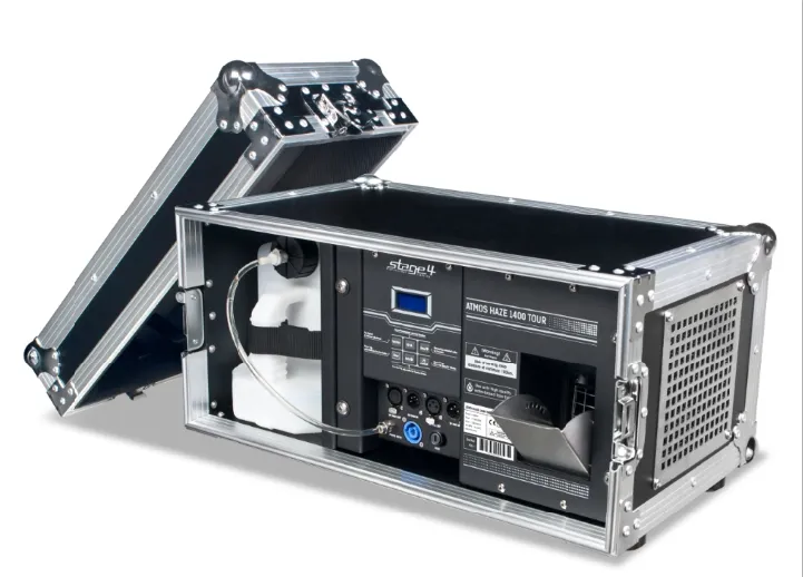 STAGE4 - ATMOS HAZE 1400 TOUR. Мощный генератор сценического тумана в туровом кейсе с функцией самоочистки, работающий на жидкости на водной основе. Нагревательный элемент - 1400Вт, встроенный вентилятор - 100Вт, ёмкость для жидкости - 5,6л, управление -