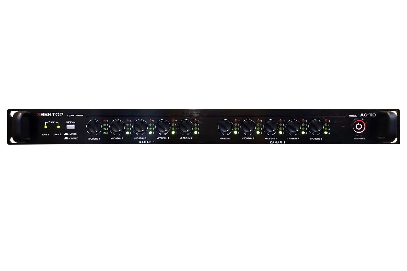ВЕКТОР АС-110 Распределитель аудио сигнала. 2 входа. 10 моно выходов или 5 стерео выходов.Питание 220/230 В или 24 В.