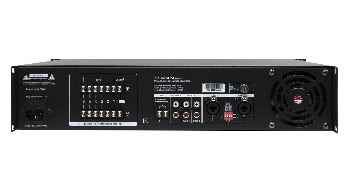 ВЕКТОР ТУ-6250М Комбинированный микшер-усилитель, 6 зон c регулировкой уровня выходного сигнала. Мощность 250Вт/100В. 2 микр, с фантомным питанием и выбором приоритета 2 лин входа, 1 Aux вых. Цифровой AM\FM тюнер, MP3 плеер, Bluetooth. ИК-пульт в компле