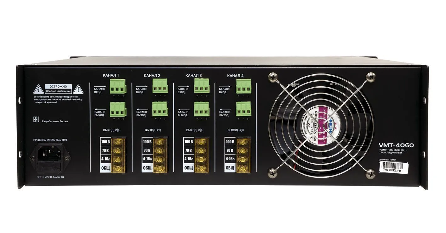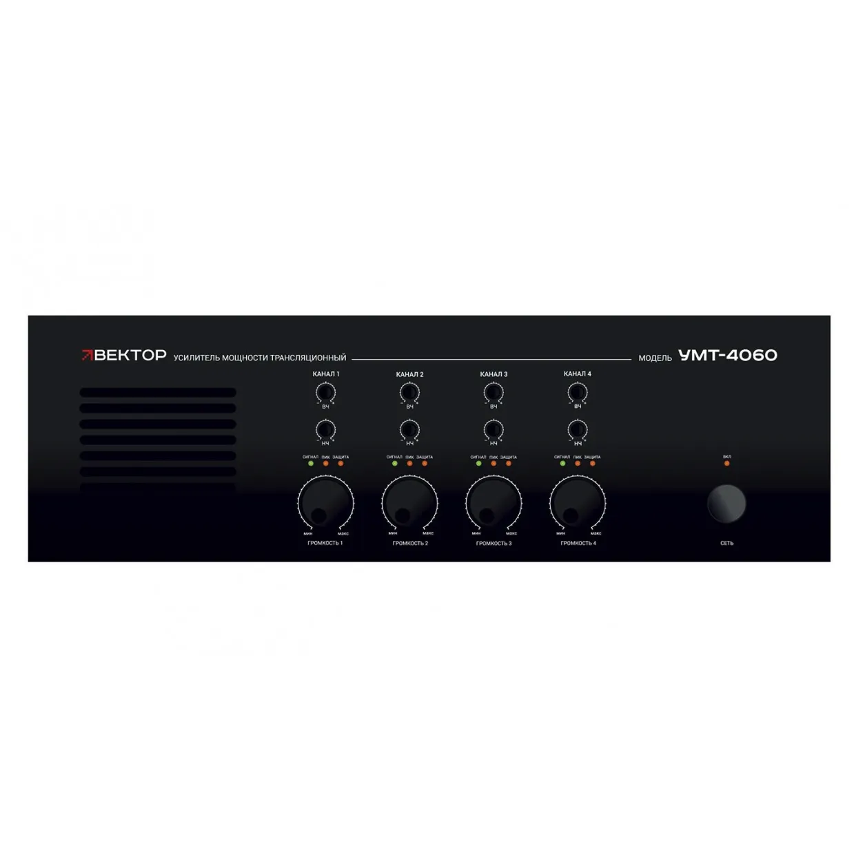 ВЕКТОР УМТ-4060 Усилитель мощности 4х60 Вт/100 В, 70 В выход или 4-16 Ом. Линейные вход /выходы, (разъем тип Phoenix). Индикация режимов работы усилителя. Регулировка уровня выходного сигнала, регулировка НЧ/ВЧ, многоступенчатая защита. Питание 220-230 В/