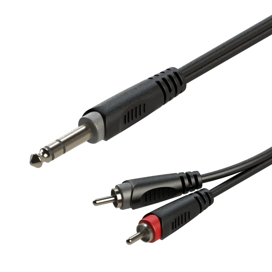 ROXTONE RAYC110/3 Аудиокабель , D:4x8mm., 2x1x0,14mm2, Экр.:90%, (6,3mm Stereo Jack - 2 x RCA), 1м., Вес: 0,152кг, поставляется по 60шт. в коробке: 46х32х23см