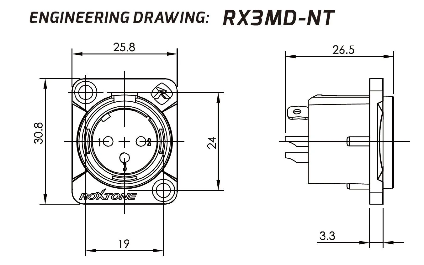ROXTONE RX3MD-NT Разъем Cannon (XLR) панельный папа 3-х контактный цвет: серебро