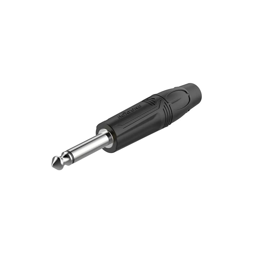 ROXTONE RJ2P-BN Разъем jack 1/4" моно с резиновым держателем под кабель. размер 93*16,4мм. Корпус: циснковый сплав под давлением, контакты: никелированная латунь. цвет: черный.