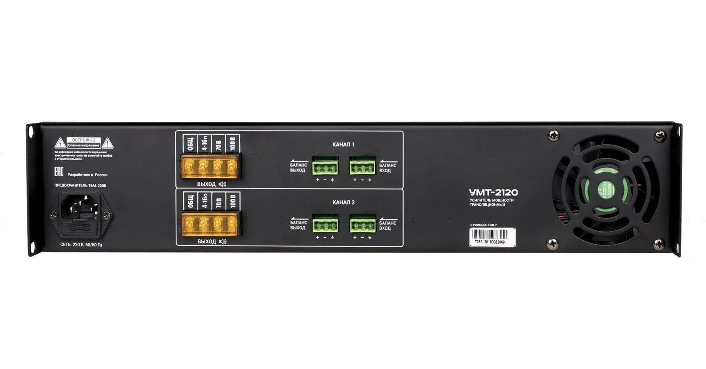ВЕКТОР УМТ-2120 Усилитель мощности 2х120 Вт/100 В, 70 В выход или 4-16 Ом. Линейные вход /выходы, (разъем тип Phoenix). Индикация режимов работы усилителя. Регулировка уровня выходного сигнала, регулировка НЧ/ВЧ, многоступенчатая защита. Питание 220-230 В