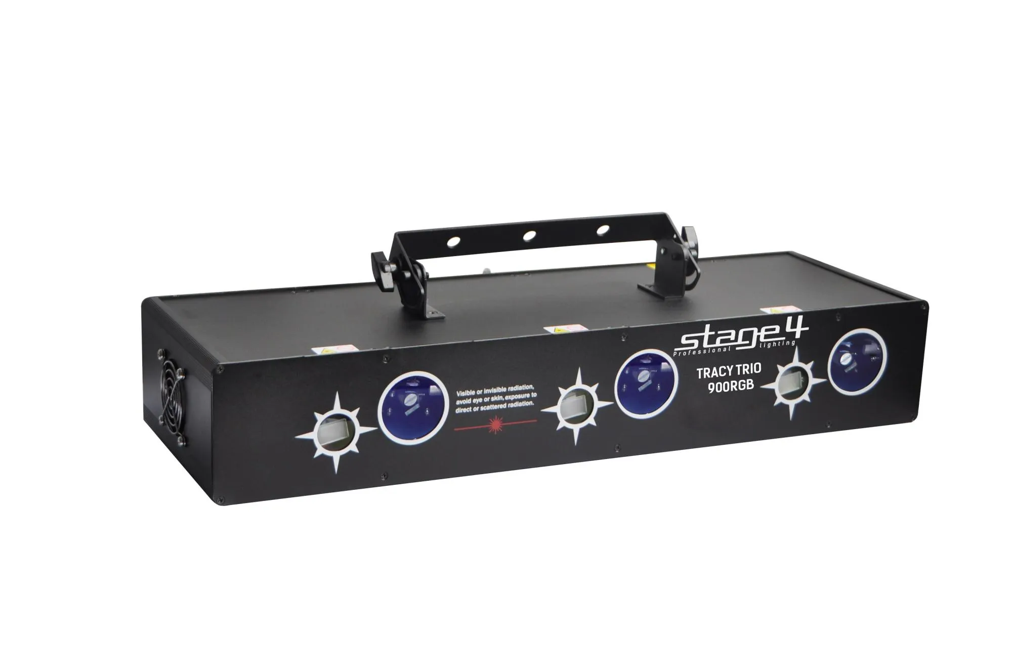 STAGE 4 TRACY TRIO 800RGB. Тип: Мультиэффект с 3-x лучевой оптикой Скорость сканирования 2 500 pps Тип излучателей Лазерный диод, DPSS Излучатели Красный: 100мВ/650нм +Зелёный: 60мВ/532нм + Синий: 600мВ/450нм Луч (∅, расхождение) 2,5мм/2мрад Управление D