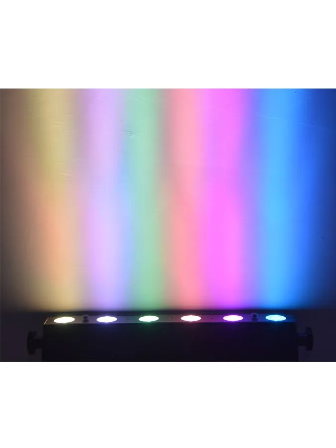 Led bar 6x10 Прожектор Led bar 6x10 Прожектор, 6 шт светодиодов по 10 Вт RGBWA. Угол луча 17° (опционально 25°). Управление: DMX, звуковая активация, автоматический режим, master/slave. Габариты 557 X 60 X 169 мм. Вес 2,8 кг.