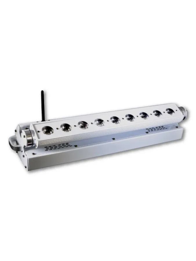 LED Wash Wireless W Прожектор LED Wash Wireless W Прожектор, 9 высокомощных LED (15 Вт) RGBWA (5-in-1). Электронный диммер 0-100%. Строб. Угол луча 30°. Управление: DMX512, автоматический режим, master/slave. До 5 часов автономной работы аккум