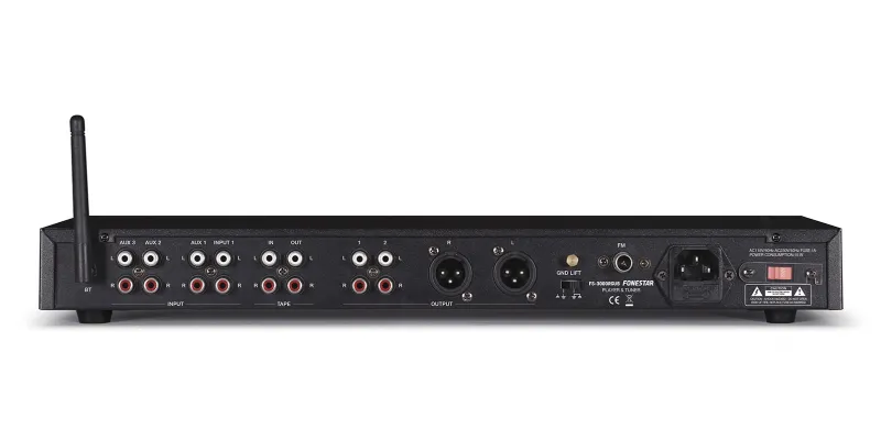 USB/SD/FM/Bluetooth проигрыватель. Входы - универсальный XLR/Jack 6.3 на лицевой панели, 1 стерео 2хRCA, 3 AUX 2хRCA, 1 tape вход 2хRCA. Выходы - балансные XLR L/R, 2 стерео 2хRCA, 1 tape 2хRCA, выход на науцшники. Трехполосный мастер эквалайзер. Регулятор общей громкости. USB порт. Слот для SD-карты. Пульт дистанционного управления. Адаптер для установки в рековую стойку. Высота 1U. Вес 1,5 кг.Наличие