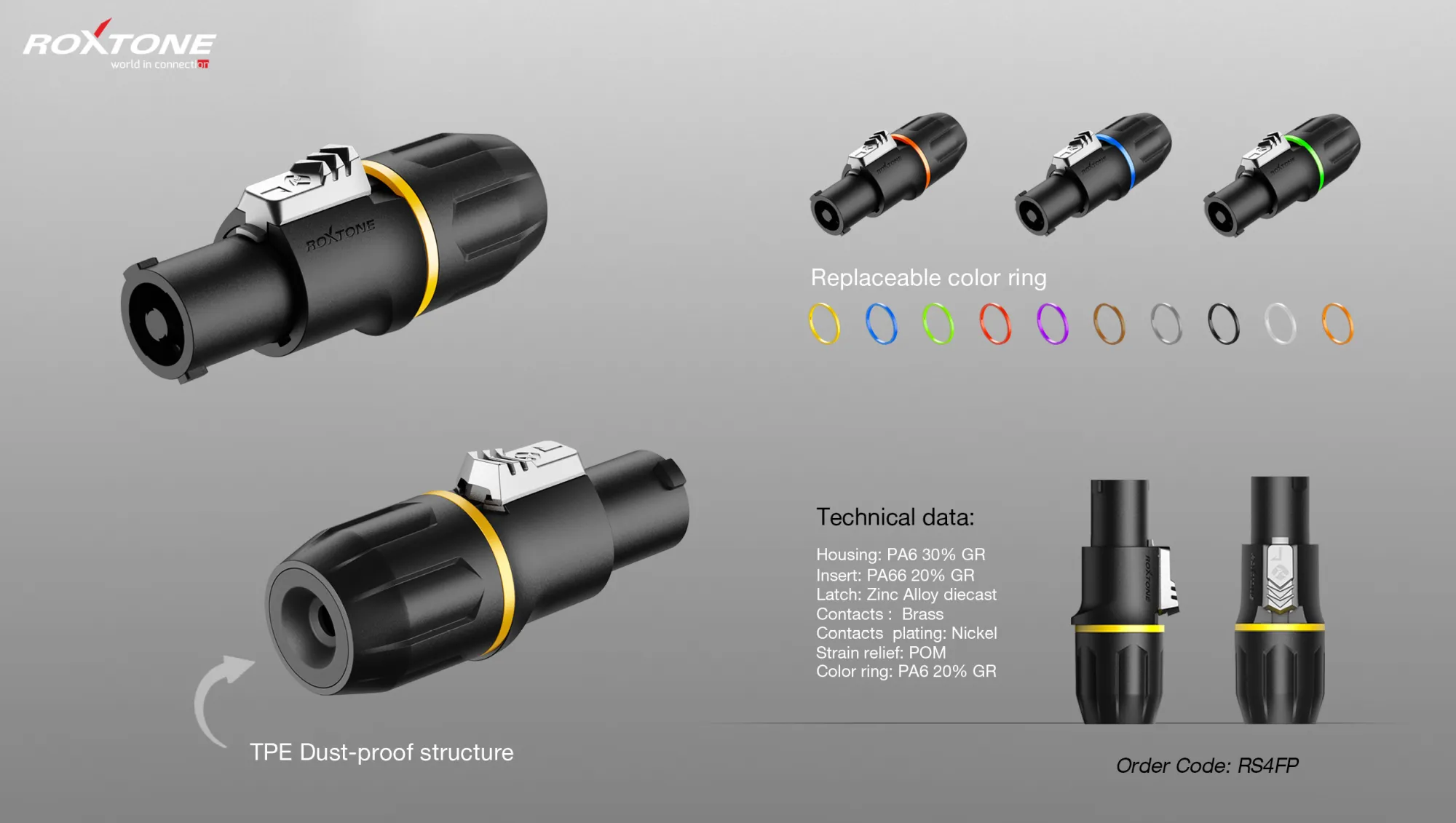 ROXTONE RS4FP-Green Разъем кабельный типа speakon, 4-х контактный, "female", Контакты: никелированная латунь. Цвет: черно-заленый.