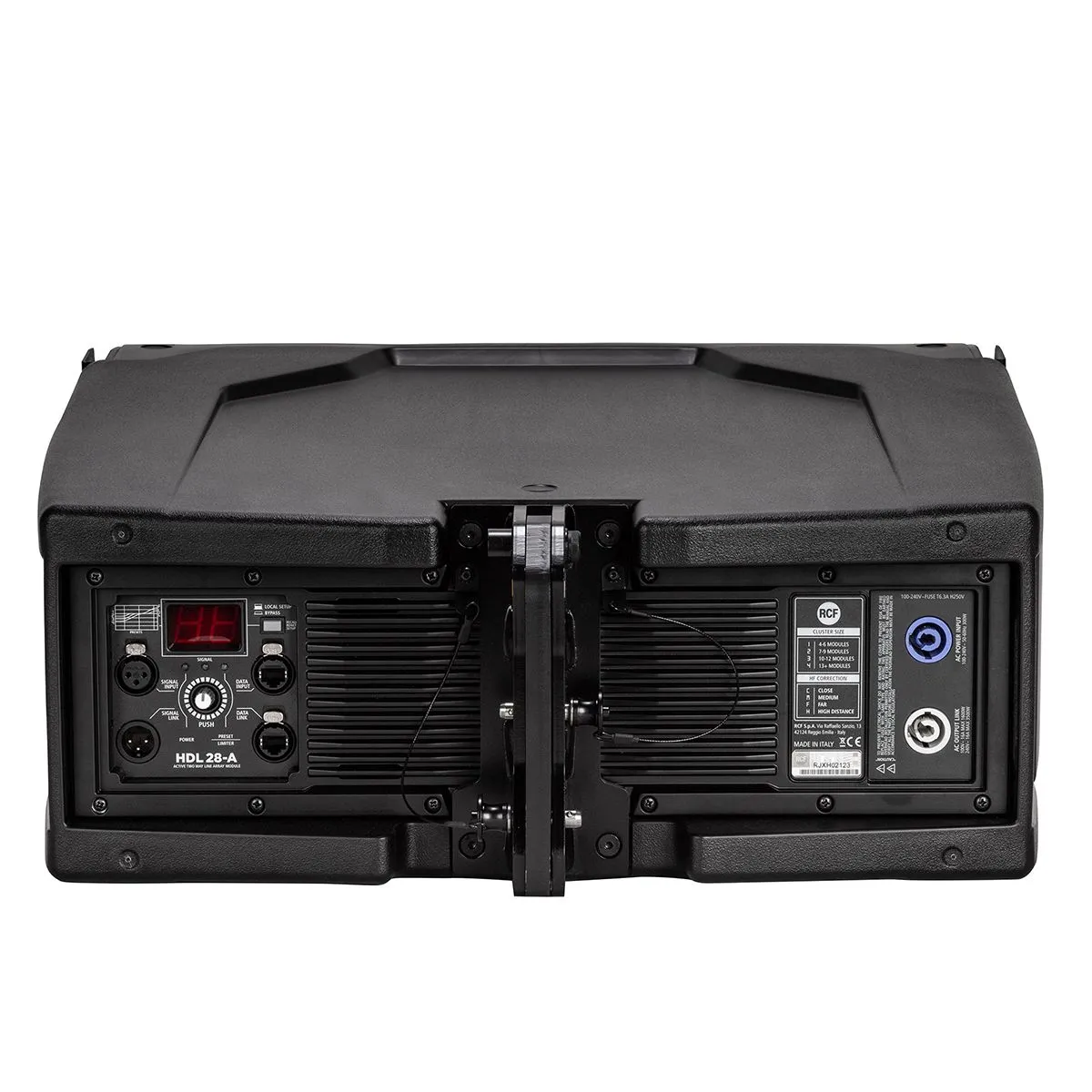 RCF HDL 28-A (13000579) Активная двухполосная АС линейного массива, усилители D-класса: 1100 Вт, 50 Гц - 20 кГц, 135 дБ, динамики: 2 х 8"(2.5" катушка) + 1,4" (3.0" катушка), рупор 100° х 15°, управляемый DSP, FIR фильтры, частота раздела 750 Гц, RDNet, в
