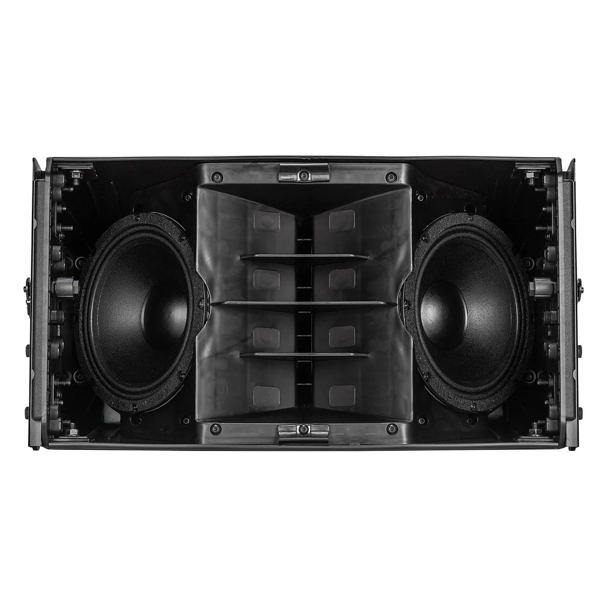 Активная двухполосная АС линейного массива, усилители D-класса: 1100 Вт, 50 Гц - 20 кГц, 135 дБ, динамики: 2 х 8" + 1,4" (3.0" катушка), рупор 100° х 15°, управляемый DSP, FIR фильтры, частота раздела 750 Гц, RDNet, вход: XLR, выход XLR, полипропиленовый