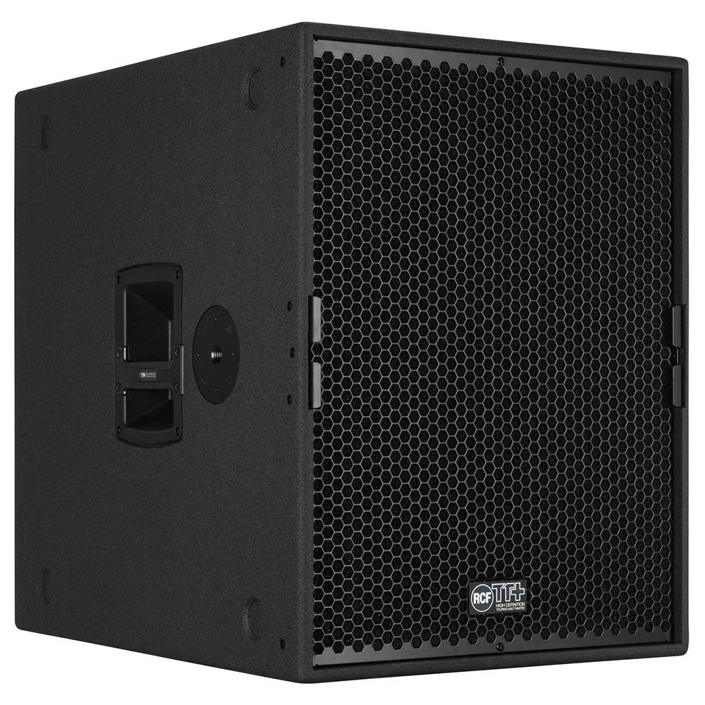 RCF TTS 18-A II (13000545) Активный сабвуфер прямого излучения, мощность 1400 Вт, 137 дБ, 30 Гц - 120 Гц, динамик 18"(4"v.c.), управляемый DSP, RDNet, задержка, ФВЧ, деревянный корпус, 540 х 708 х 732 мм, 52 кг, возможность установки штатива для сателлит