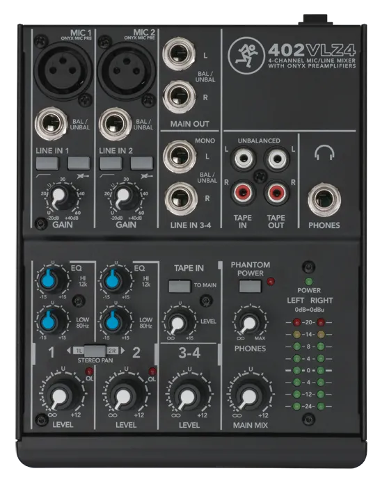 Знаменитые предусилители «Onyx» были специально разработаны для микшерных пультов «MACKIE» и модель 402 VLZ 4 не стала исключением. Эти преампы отлично сочетаются с шинами передачи сигнала, обеспечивая целостность сигнала от каждого входа до выхода. Если Вы используете конденсаторные микрофоны, то в этом микшере есть фантомное питание +48В.