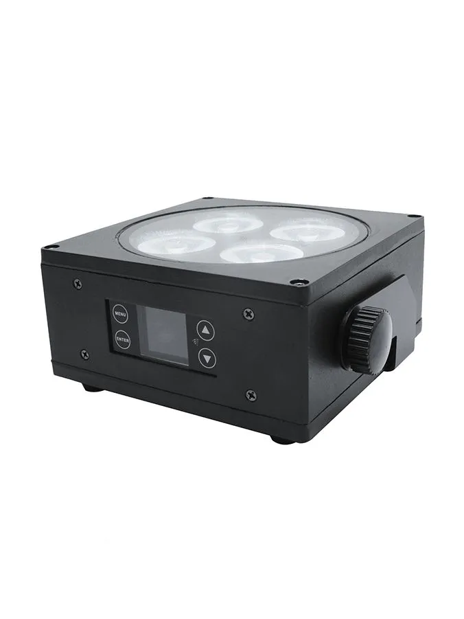 Plano spot 4 wireless Прожектор Plano spot 4 wireless Светодиодный, аккумуляторный прожектор типа PAR. Источник света 4 по (15 Вт) RGBWA+UV светодиодов. Угол луча 25°. Li аккумуляторная батарея 10000 мА. Управление: DMX512, количество кан