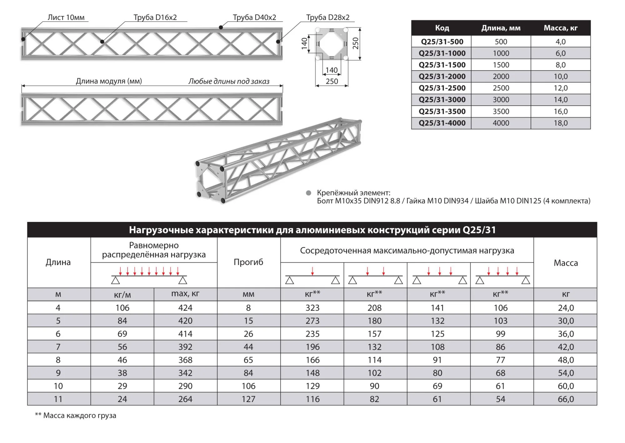 ИМЛАЙТ Q25/31-500 Прямой модуль квадратной конфигурации длиной 500мм, 250x250мм, d40x2 \ d16x2мм. Крепежный размер 140х140мм, М10. Рисунок перемычек круговой.
