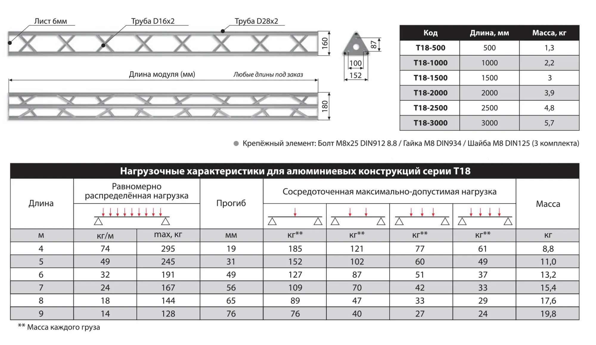 ИМЛАЙТ T18-2000 Прямой модуль треугольной конфигурации длиной 2000мм, d28х2 \ d16х2мм. Крепежный размер 100мм, М8. Рисунок перемычек круговой.