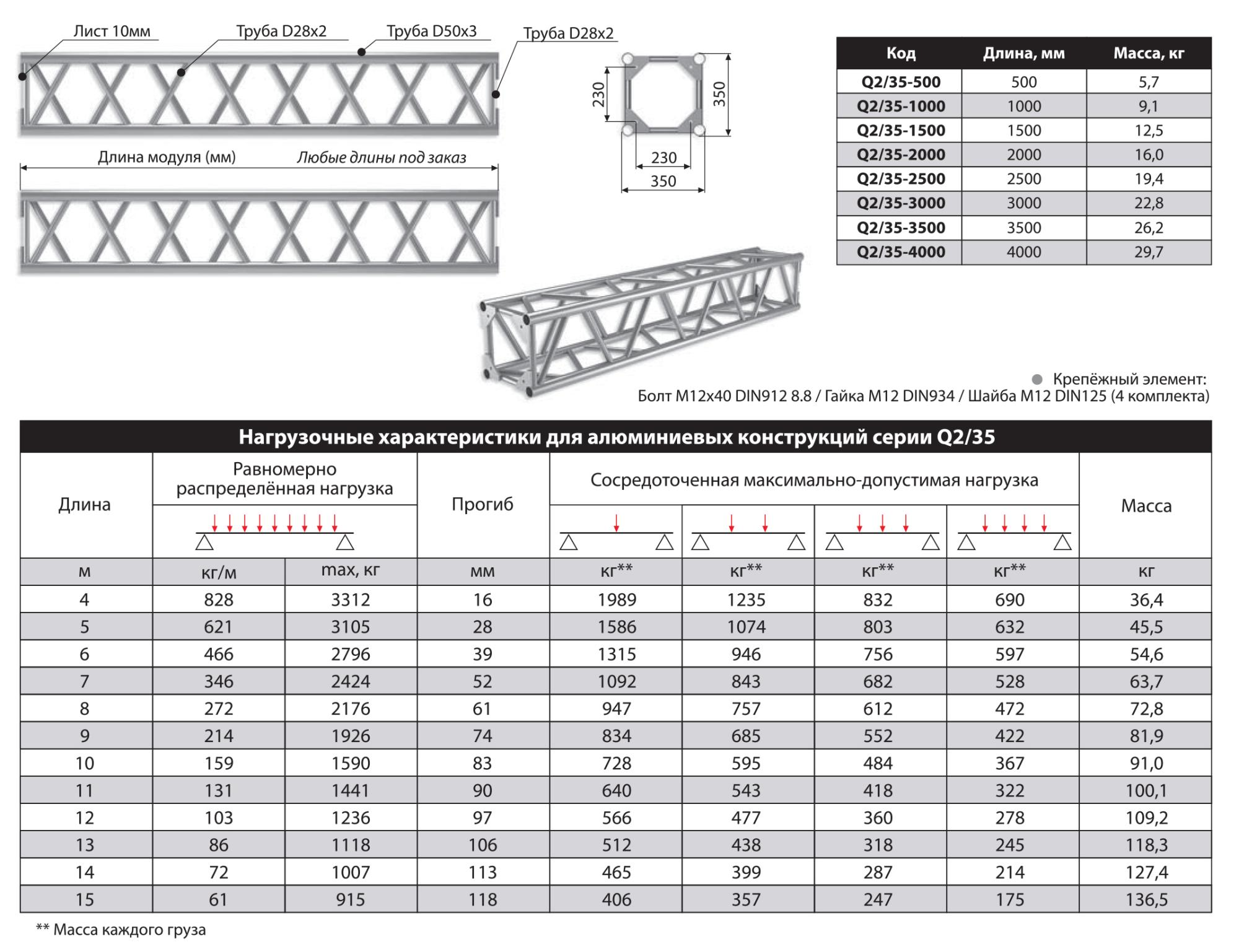 ИМЛАЙТ Q2/35-3000 Прямой модуль квадратной конфигурации длиной 3000мм, 350x350мм, d50x3 \ d28x2мм. Крепежный размер 230х230мм, М12. Рисунок перемычек круговой.
