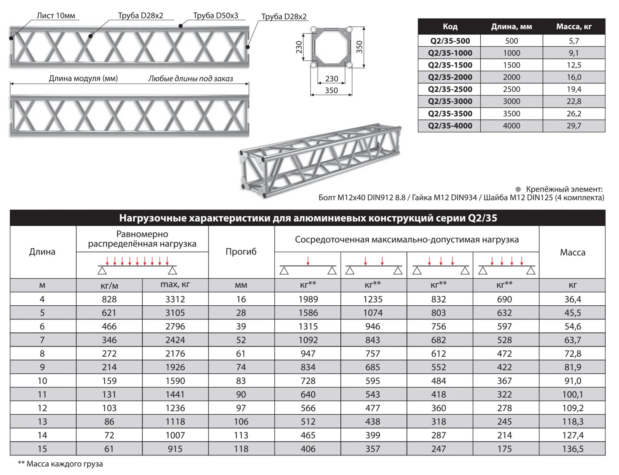 ИМЛАЙТ Q2/35-500 Прямой модуль квадратной конфигурации длиной 500мм, 350x350мм, d50x3 \ d28x2мм. Крепежный размер 230х230мм, М12. Рисунок перемычек круговой.