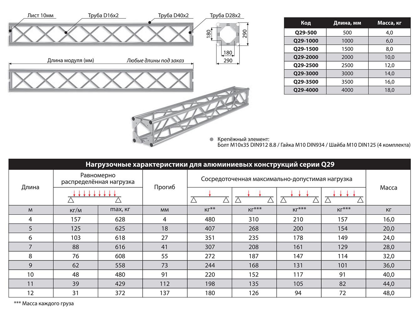 ИМЛАЙТ Q29-3000 Прямой модуль квадратной конфигурации длиной 3000мм, 290x290мм, d40x2 \ d16x2мм. Крепежный размер 180х180мм, М10. Рисунок перемычек круговой.
