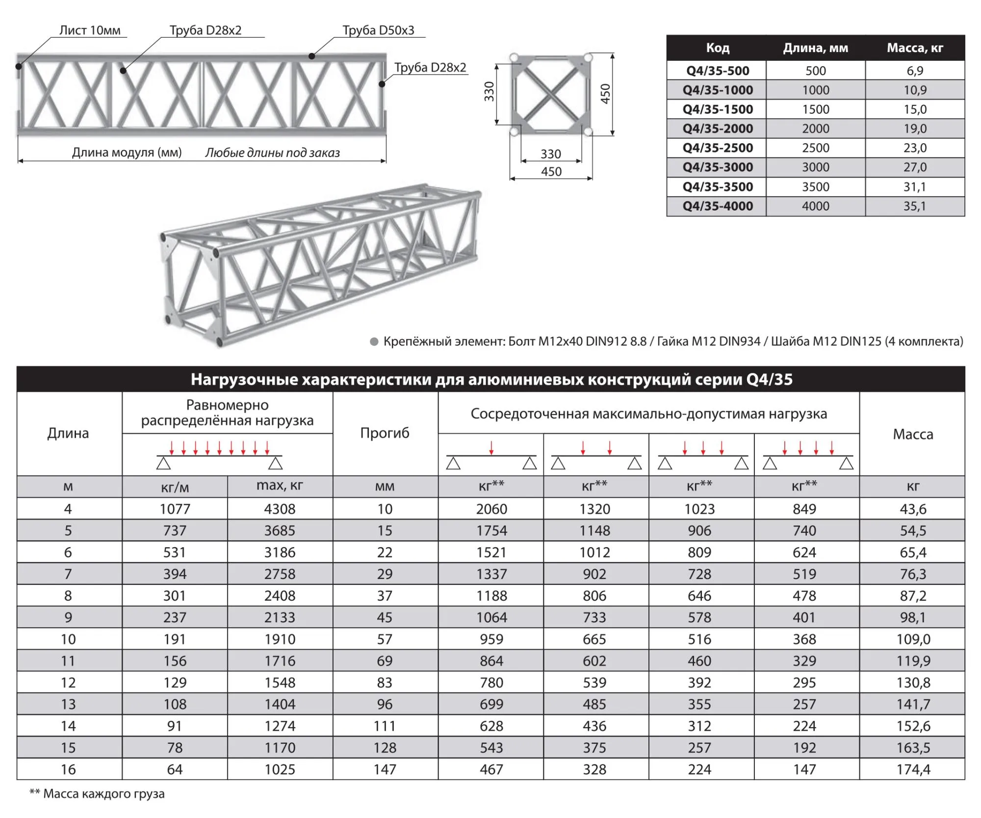 ИМЛАЙТ Q4/35-5500 Прямой модуль квадратной конфигурации длиной 5500мм, 450x450мм, d50x3 \ d28x2мм. Крепежный размер 330х330мм, М12. Рисунок перемычек круговой.