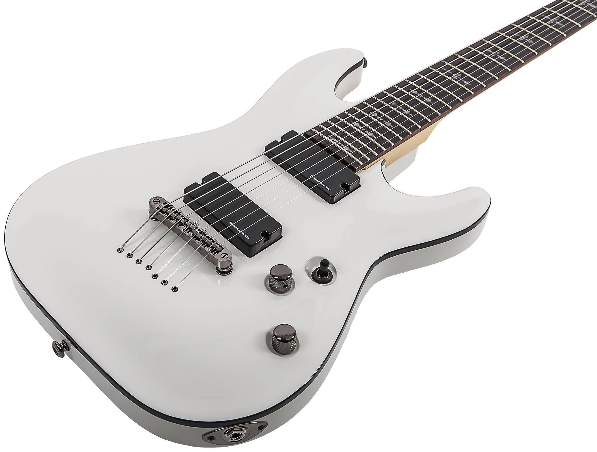 SCHECTER DEMON-7 VWHT - 7-струнная электрогитара, 24 лада, корпус: липа, гриф:клён, накладка венге, на болтах, звукосниматели: HH Schecter Diamond Active HB-105S, регулировки: громкость, тон, 3х позиционный переключатель, Цвет: винтажный белый