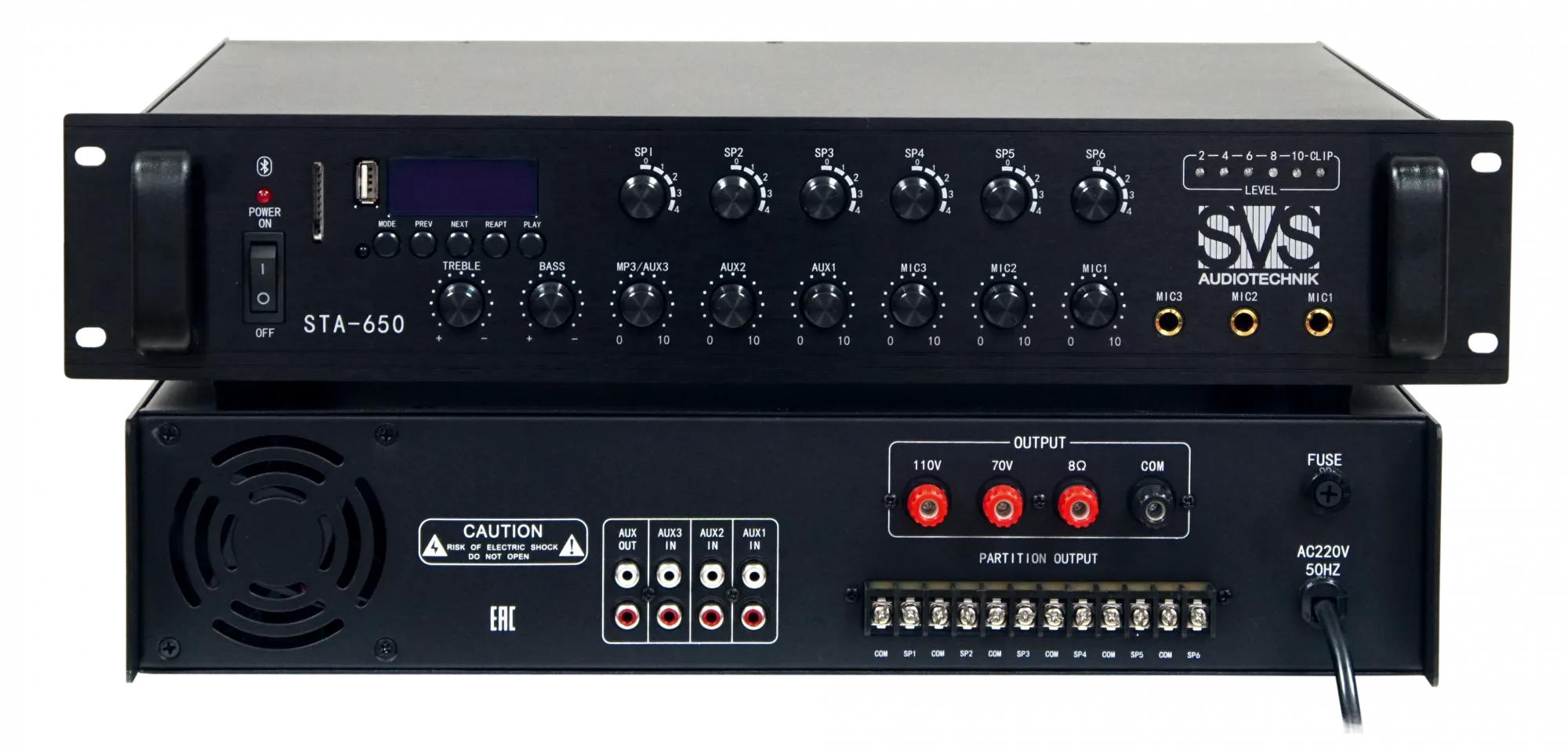 SVS Audiotechnik STA-650 Радиоузел 6 зон, 70/100 В (4, 8, 16 Ом), усилитель мощности 650 Вт