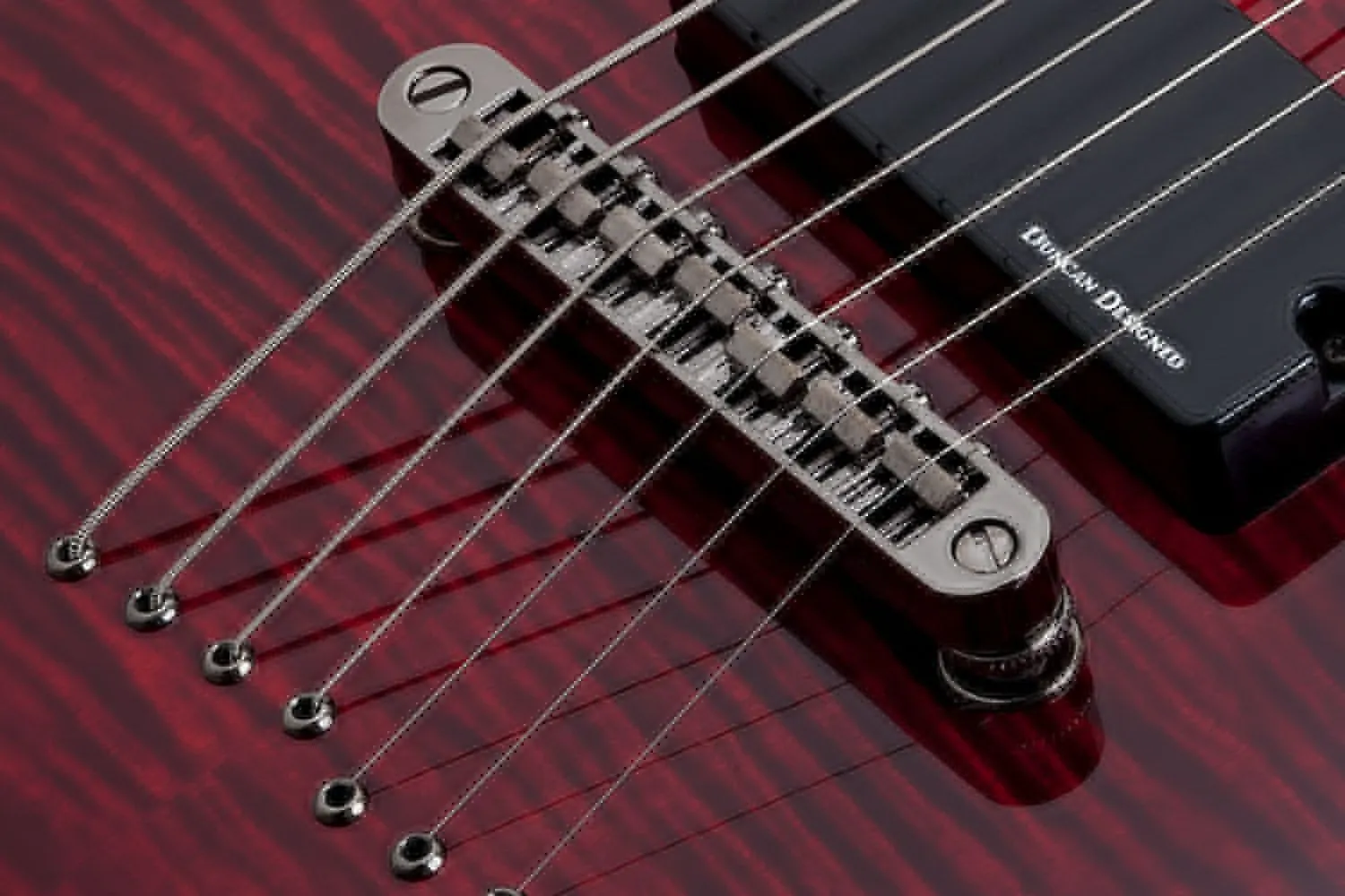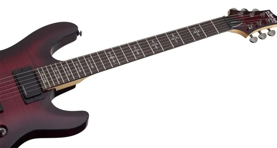 SCHECTER DEMON-7 CRB - 7-струнная электрогитара, 24 лада, корпус: липа, гриф:клён, накладка венге, на болтах, звукосниматели: HH Schecter Diamond Active HB-105S, регулировки: громкость, тон, 3х позиционный переключатель, Цвет гитары: Crimson Red Burst (CR