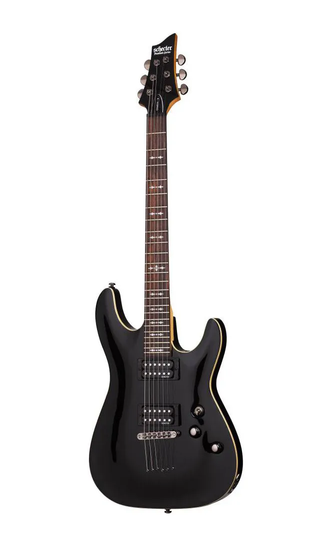 SCHECTER OMEN-6 BLK - 6 струнная электрогитара, 24 лада, корпус: липа, гриф клён, на болтах, накладка палисандр, звукосниматели: HH 2x Schecter Diamond Plus, регулировки: громкость, тон, 3х позиционный переключатель, цвет: Gloss Black (BLK)