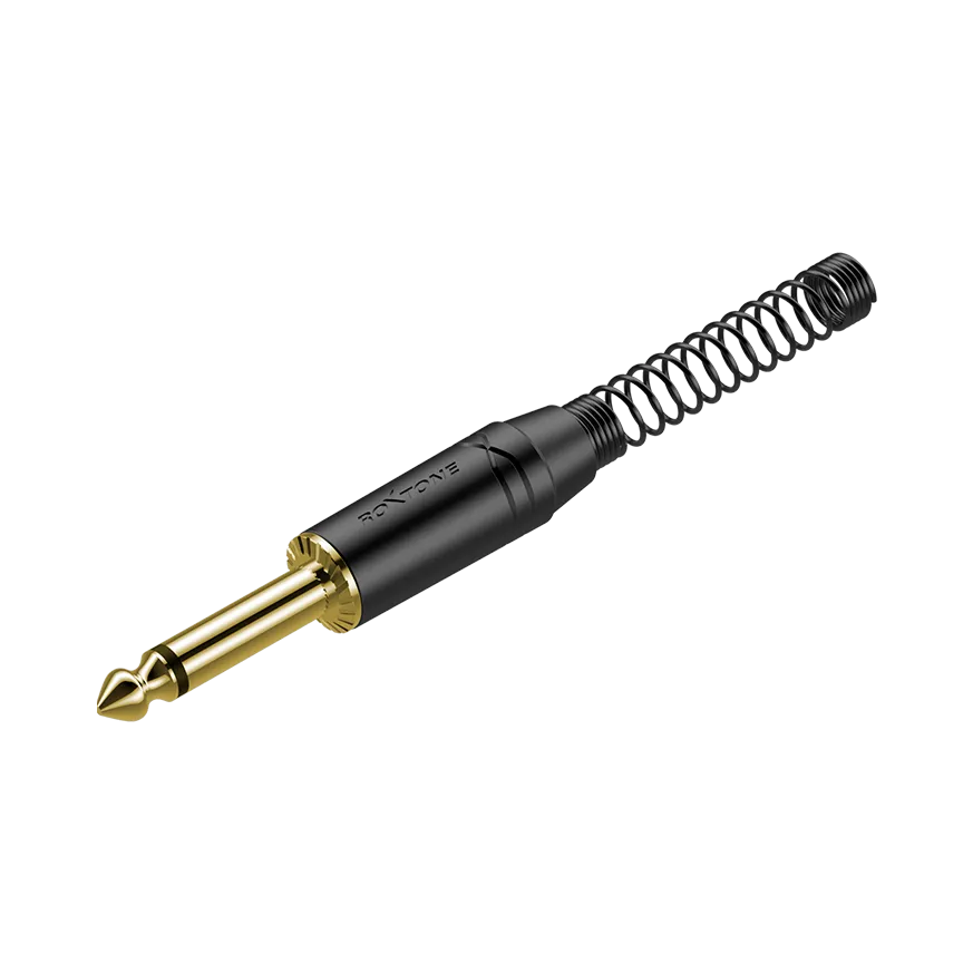 ROXTONE RJ2PP-BG Разъем jack 1/4" моно с пружиной. Размер 118,4*14 Макс. диаметр кабеля: с пружиной 7мм, без пружины 8,5мм Цвет: черный