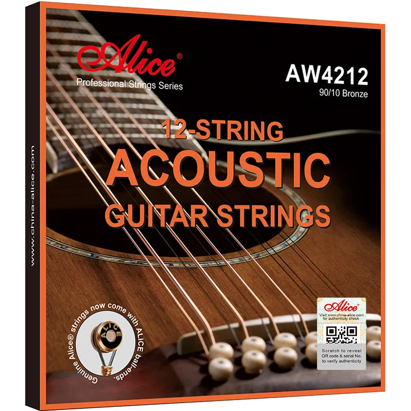 AW4212-L Комплект струн для 12-струнной акустической гитары, бронза 90/10, 12-52, Alice