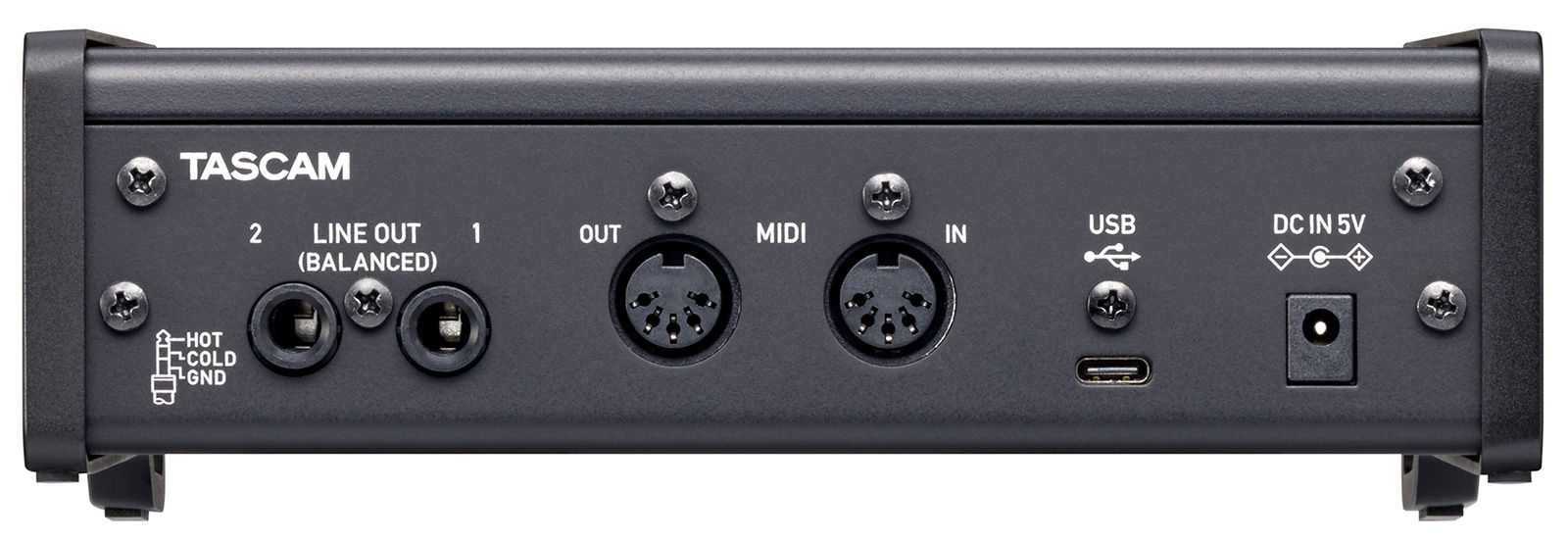 Tascam US-2x2HR - USB аудио интерфейс, 24 бит/192 кГц, 2x Combo XLR/TRS микр./лин./инстр. входа, питание +48 В, 2х 1/4" TRS лин. выхода, 1/4" стерео выход на наушники, USB 2.0 Type-C (питание), MIDI In/Out, разъем DC 5V, совместимость Win/MacOS X