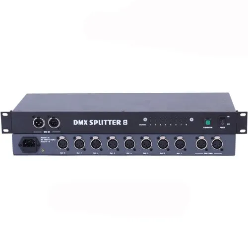 DS-8 Сплиттер DS-8 Сплиттер цифрового сигнала DMX512 1 вход, 8 выходов. Вес 2,3 кг. Габариты 482 X 170 X 44мм