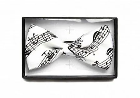 Бабочка искусст.шёлк Ноты белая широк. в подарочной упак.