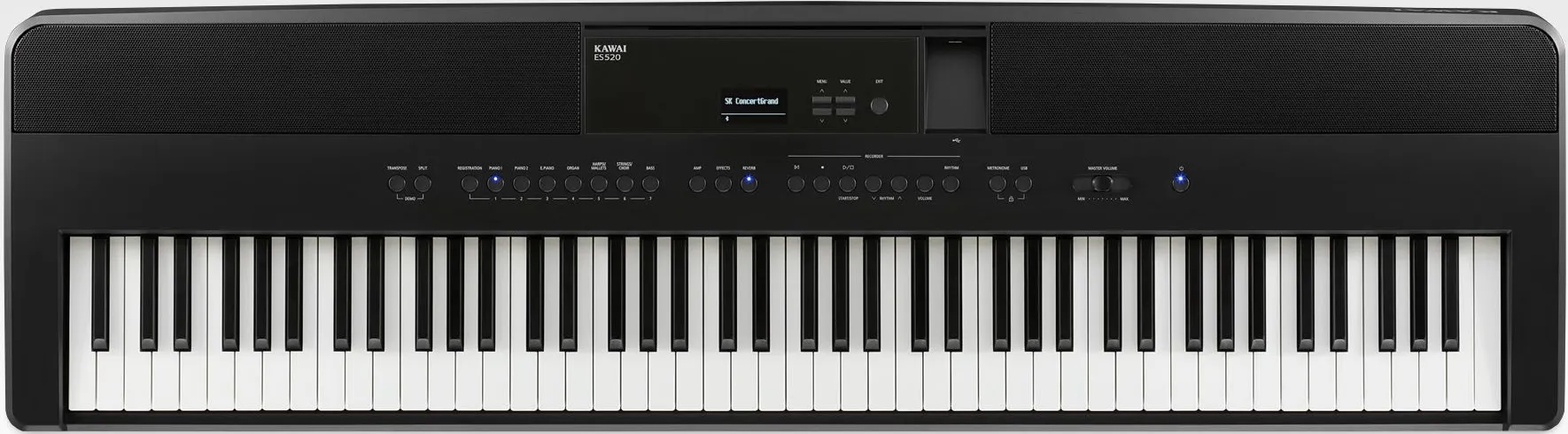 Kawai es520b цифровое пианино, 88 клавиш, rhc ii, 192 полифония, 34 тебмр, 100 стили, bluetooth 4.1