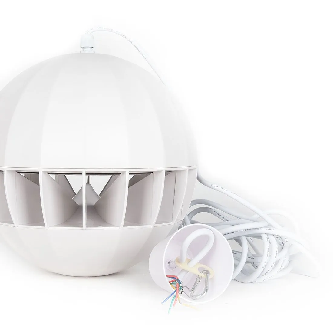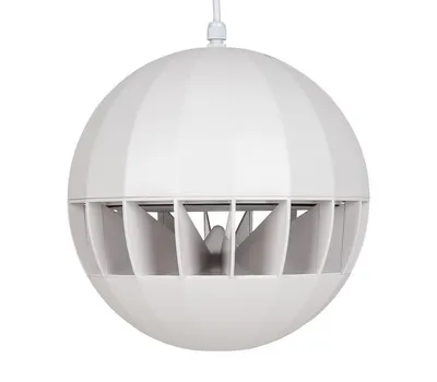 Подвесной сферический громкоговоритель (100В): 20-10-5 Вт, 160-12500 Гц, SPL 109 дБ на 1 м, Диаметр 260 мм. Масса 1,2 кг, 360°x140°