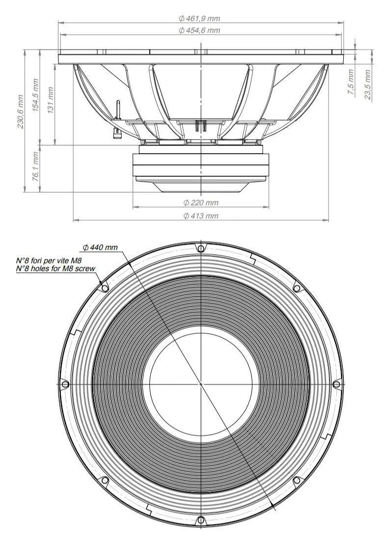 EIGHTEEN SOUND 18LW2600/8 - 18' динамик с расширенным НЧ, 8 Ом, 1500 Вт AES, 97 dB, 30-800 Гц